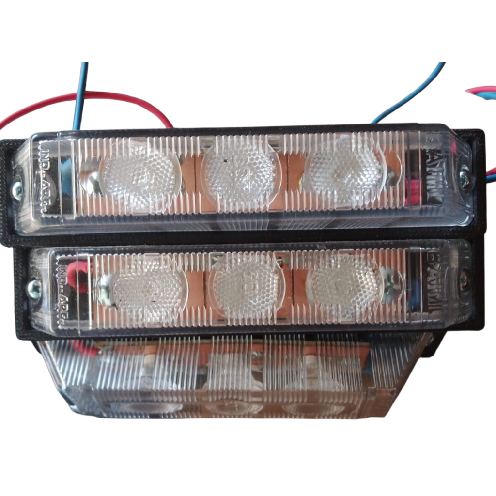 Está especialmente diseñado para la parte frontal del vehículo, con instalación en la parrilla del auto o camioneta, aprovechando los espacios de ventilación del radiador sin interferir en su funcionamiento.